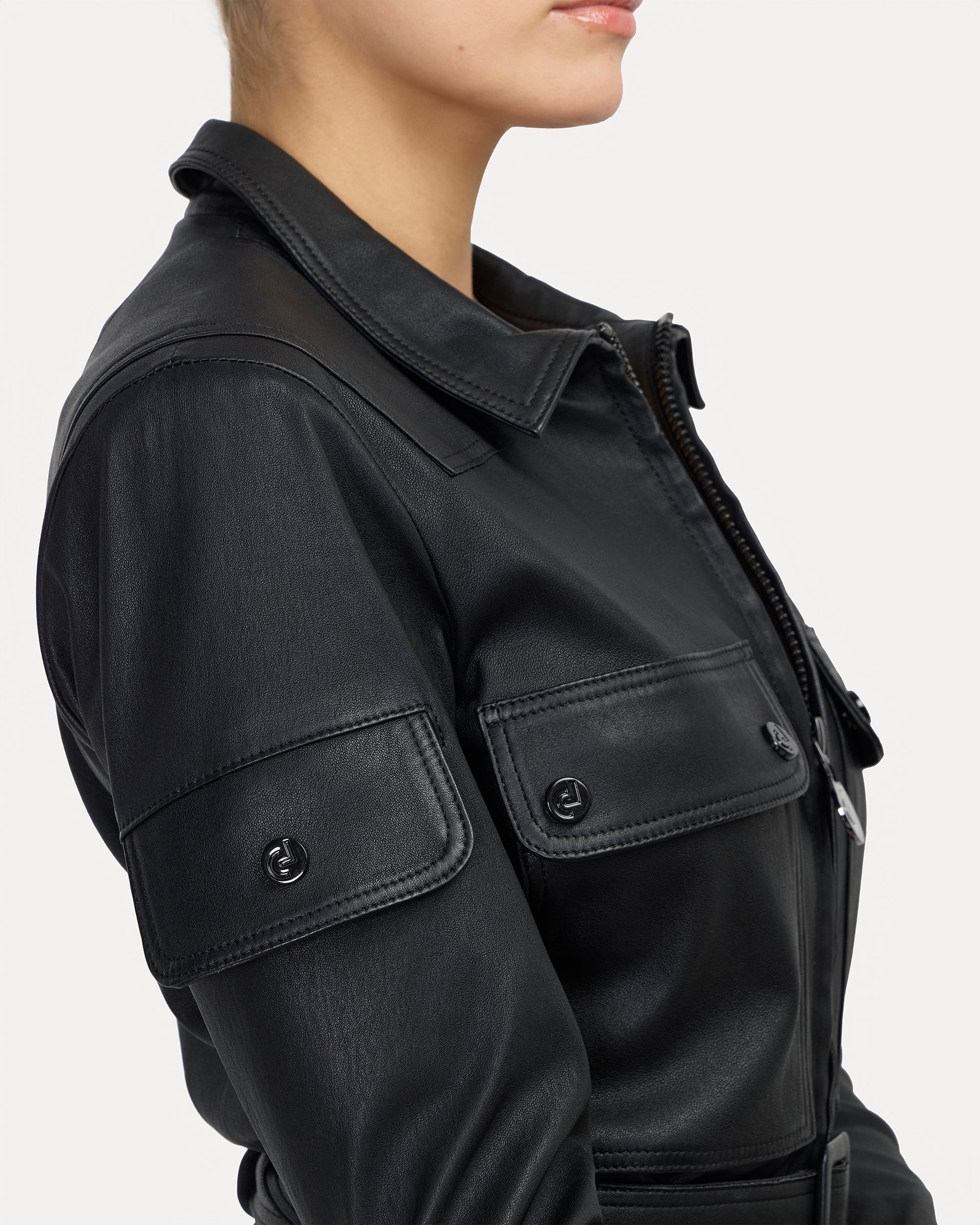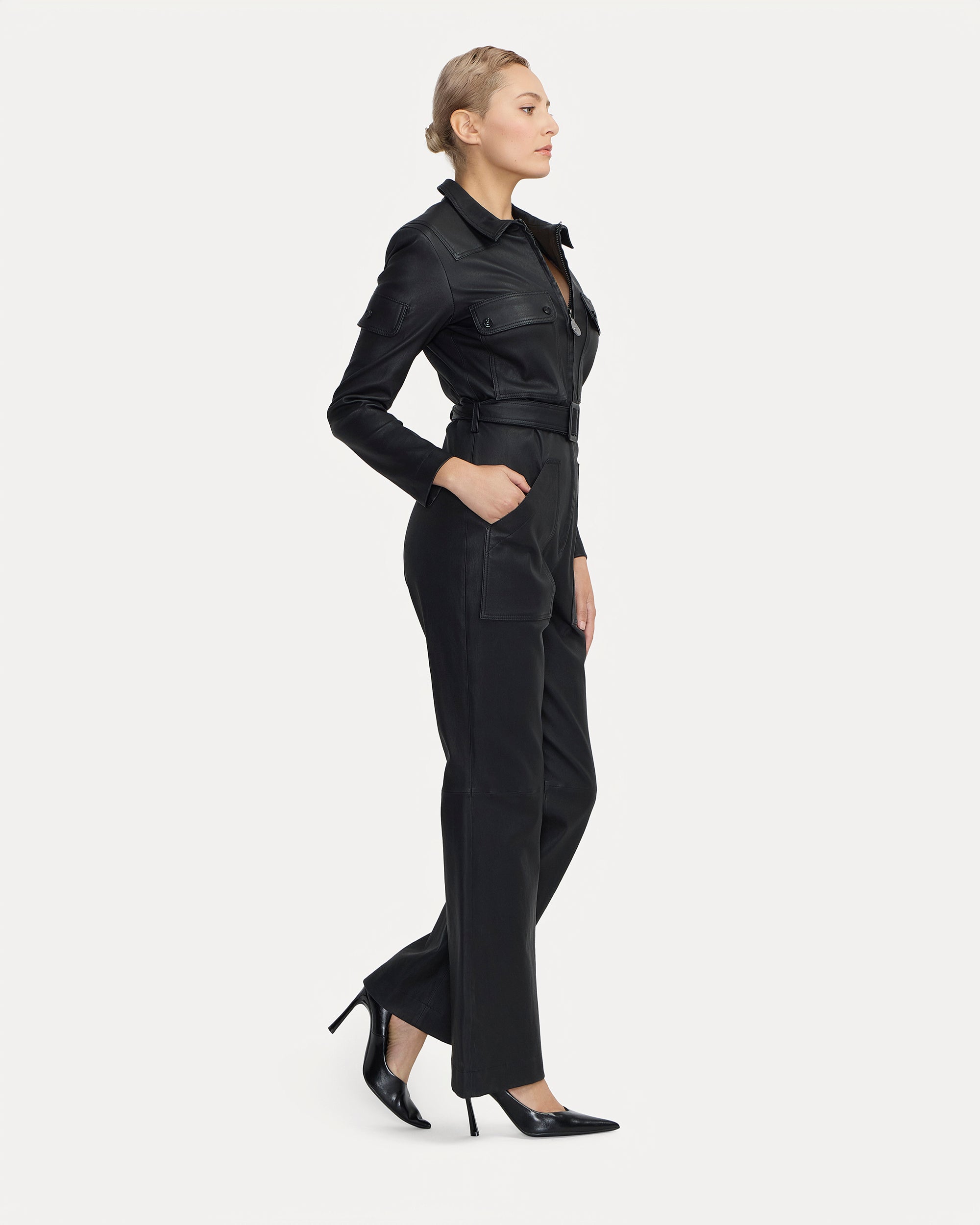 The Sabine Cuir jumpsuit embodies exceptional craftsmanship and the finest materials. Made from premium lambskin leather of exceptional quality, it captivates with its infinitely supple feel, remarkable finesse, and impeccable fit. Selected with the utmost care, this high-end leather offers a second-skin feel and absolute comfort.